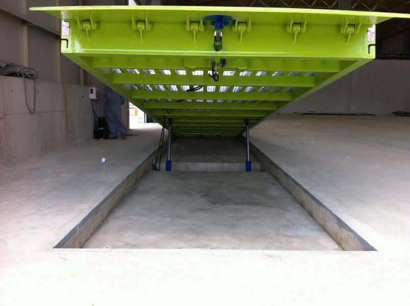 Gömme Rampa da kullanılan malzemeler st 52 ve üzeri mukavvemete sahip olup ön flap grubu ile ana karkas hidrolik piston tahriği ile çalışmaktadır.