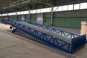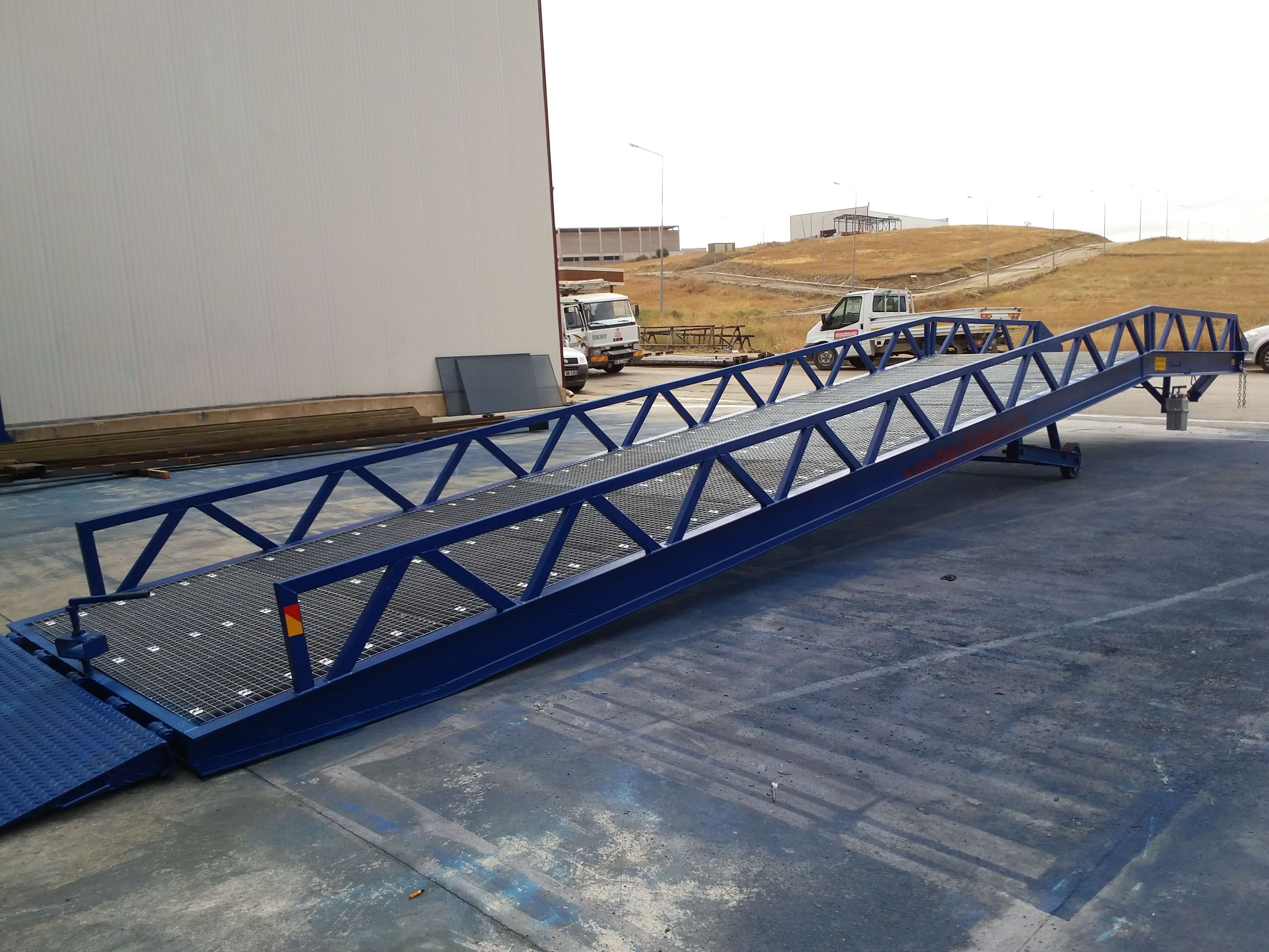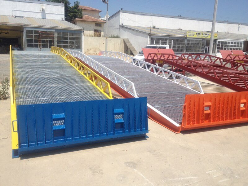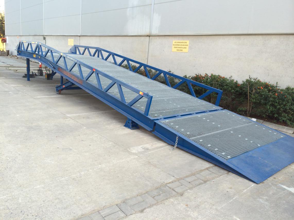 Hidrolik rampaların uzunlugu 10.25 mt den başlayarak 12 mt uzunluga kadar imal edilmektedir.Seyyar rampa larda olduğu gibi yükleme açısı en düşük 10. 25 mt uzunlukta elde edilmektedir. Bu uzunluk 12 mt ye kadar uzatıldığında hem kullanıcı hem forklift için kolay yükleme boşaltma anlamına gelmektedir. Hidrolik rampa ların en önemli özelliği araç amortisörleri ile senkron bir şekilde çalışarak yükleme sırasında forklift yükü ile birlikte rampa üzerine tırmanmasıya yükün bir bölümünü araç dorsesine vermesi ve aracın yük ile alçalmasıdır. Bu şekilde forklift rampa üzerinde dorse içine geçişi ile sekme yapmamaktadır.